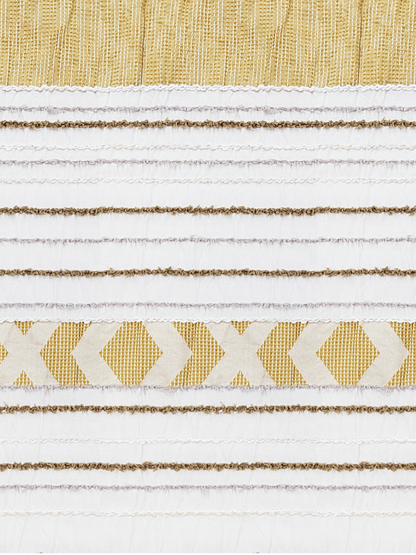 Light brown and white collide with each other and are spaced apart from each other. White x-shaped and bracket patterns are added to the light brown partitions, making the overall look more layered.